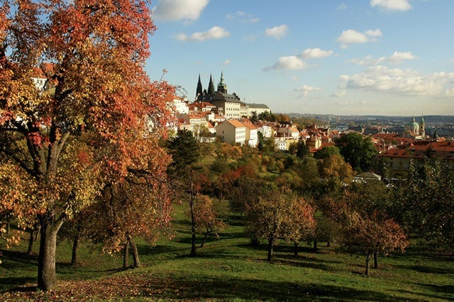 Petřín Hill – take the funicular to the top for panoramic views over the city, then walk down the grassy banks via the Rose Garden and the Seminary Garden (with over 2000 types of fruit tree).
